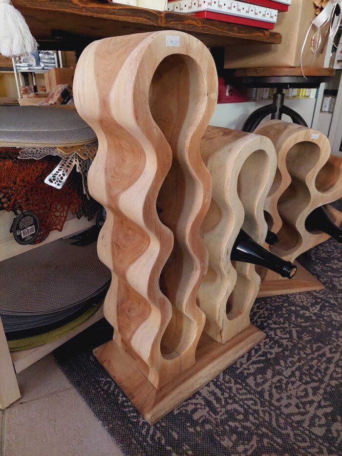 Porta bottiglie in legno massello di Suar interamente realizzati a mano.