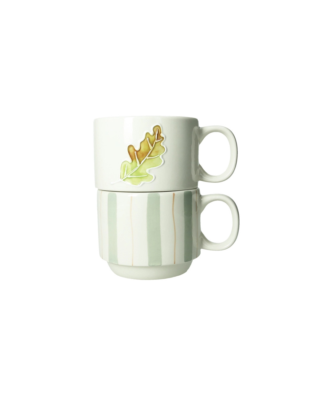 Set 2 tazze impilabili decoro foglia e righe